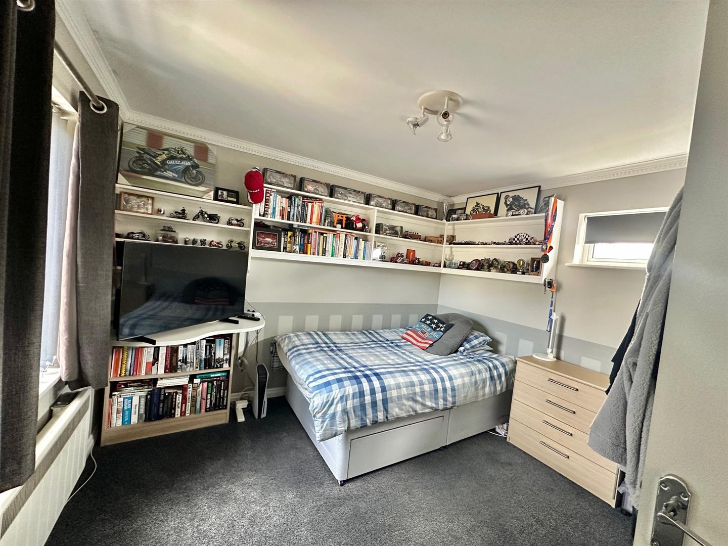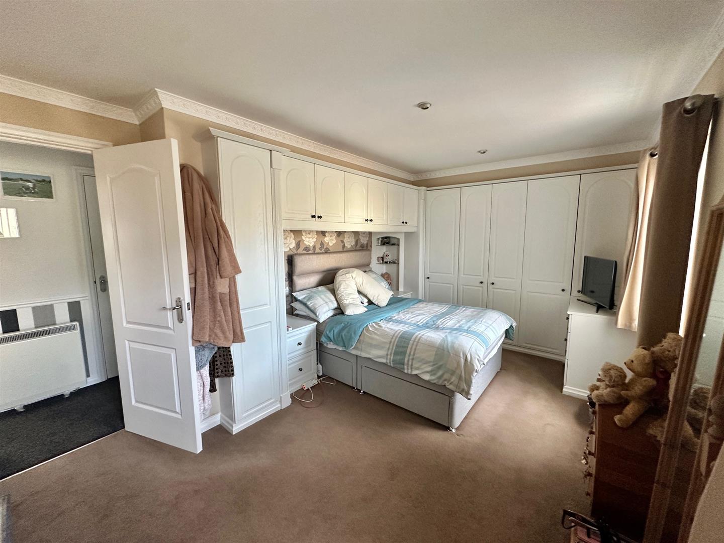 Large double bedroom laid to carpet with built-in furniture & wardrobes. Two windows overlooking the front of the property.