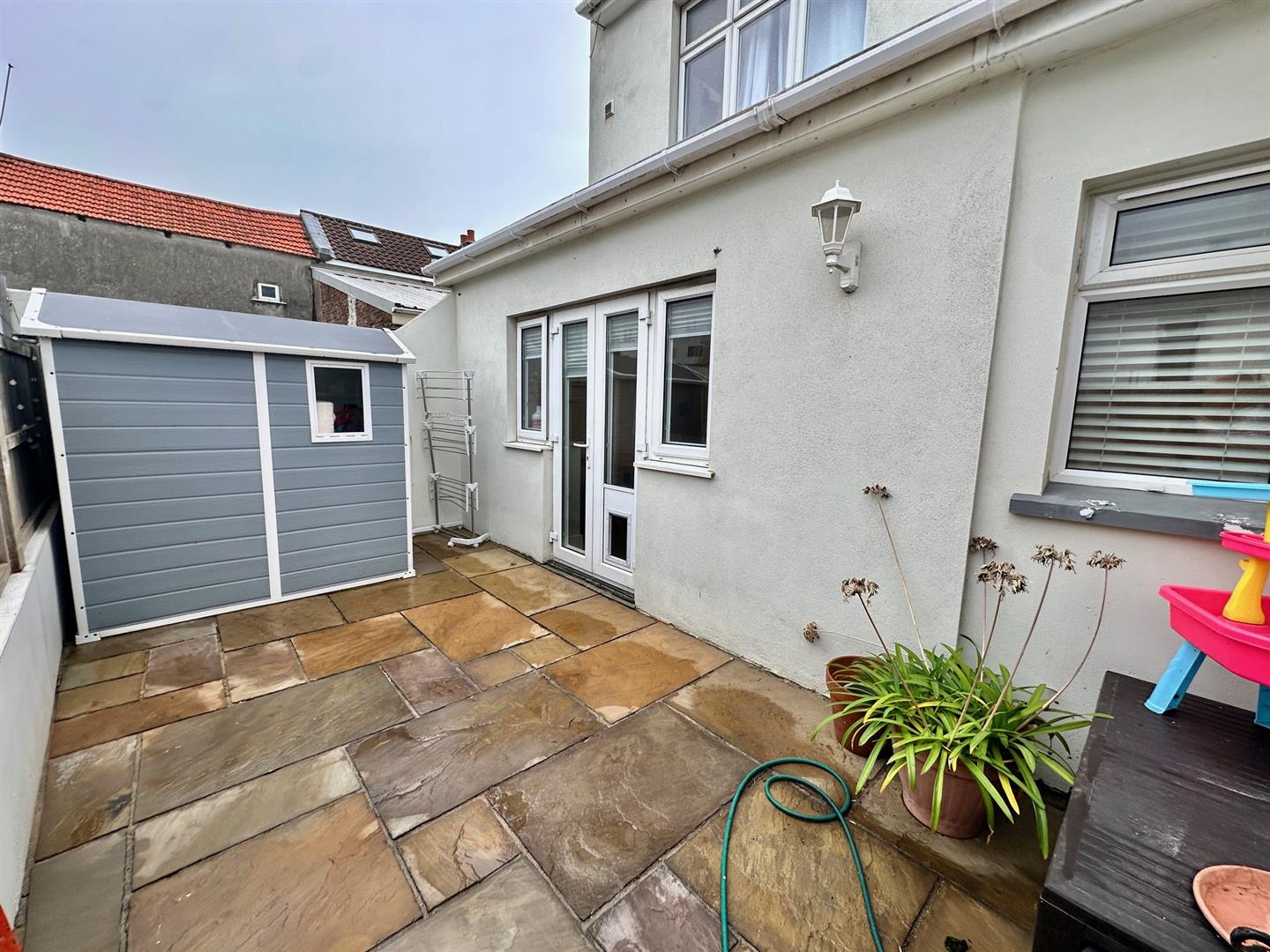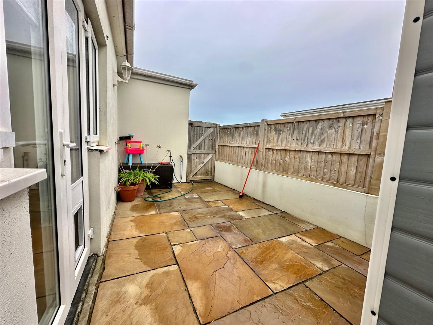 Private, safe & enclosed rear garden laid to paving.