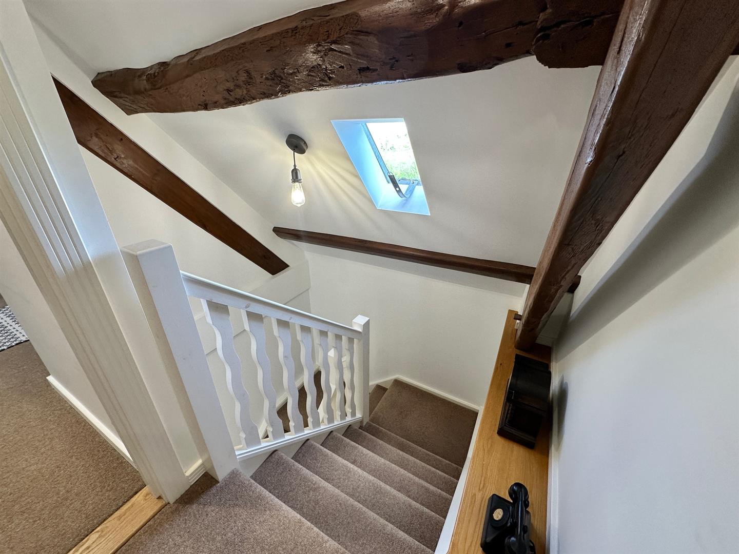 Double bedroom laid to carpet with original feature wooden beams & roof light.