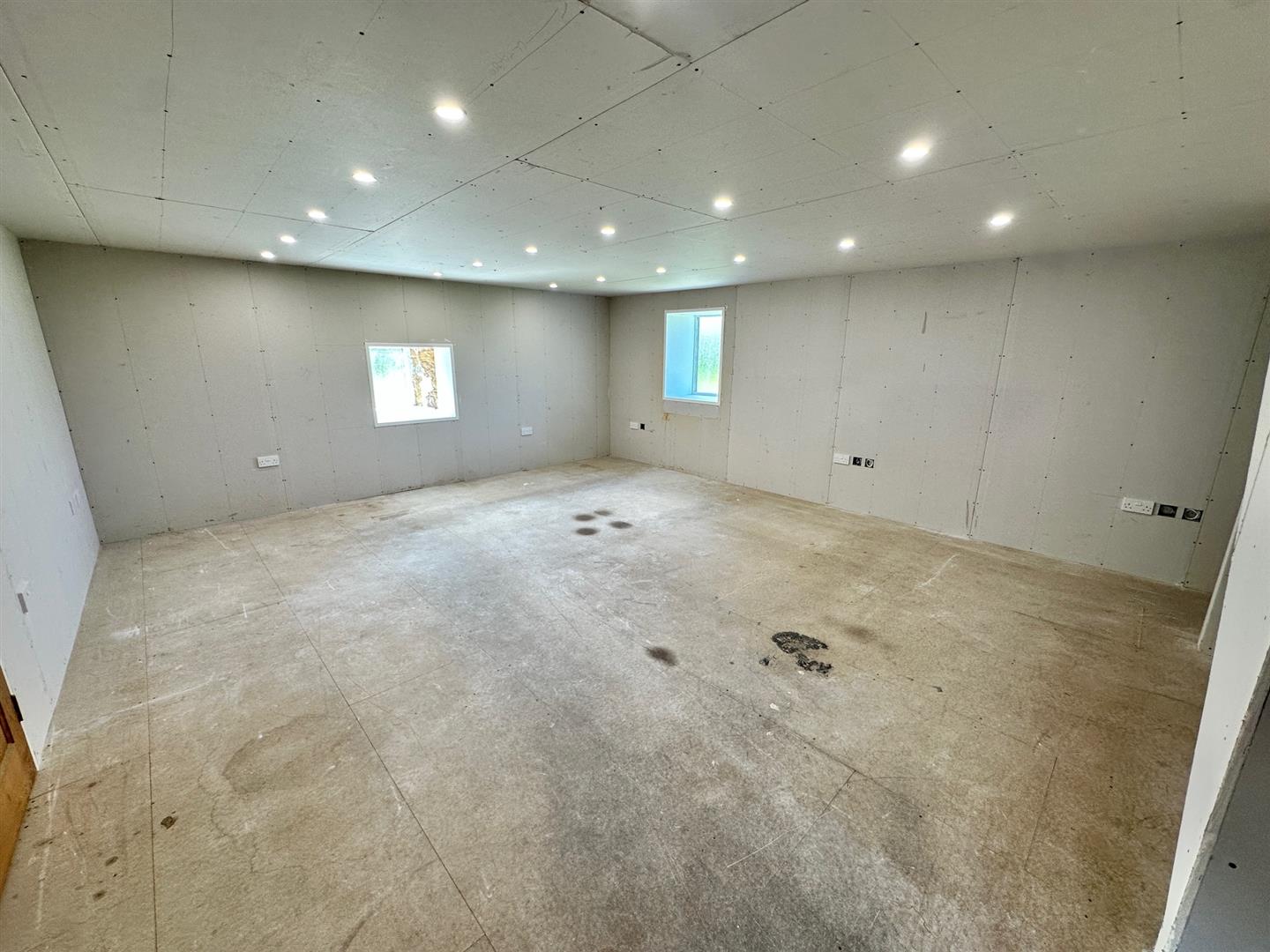 Tanked, reinforced, insulated concrete slab with underfloor heating - Window to outside and double opening doors.