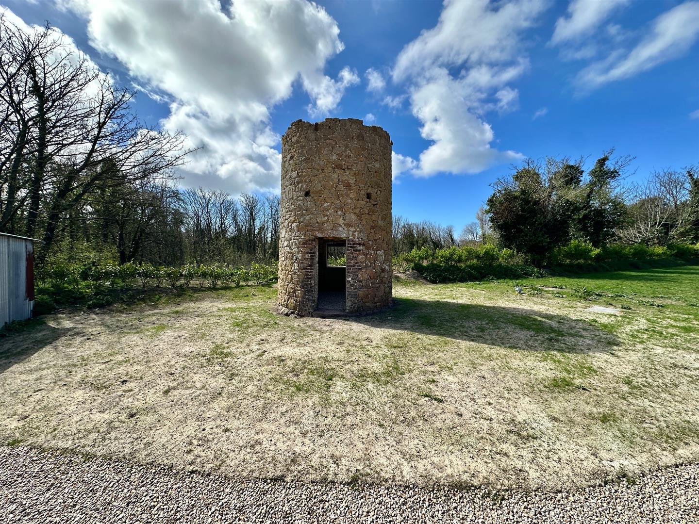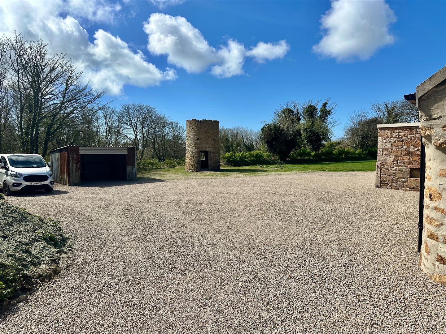 Le Marais Cottage the property within the courtyard and with a dormer window is not included in this sale. The main house, annexe, all storage units, tower, gardens & yard space are included.