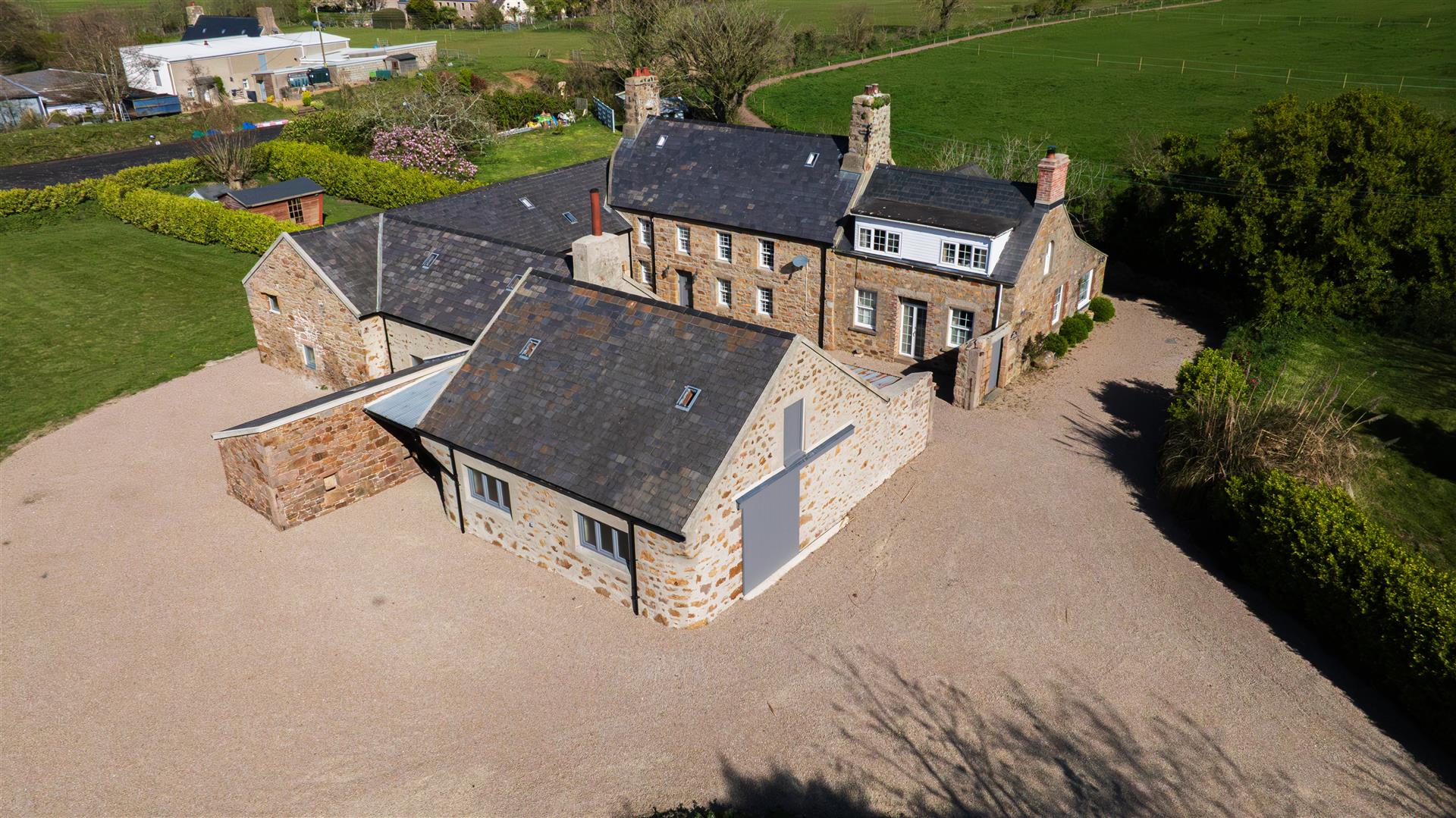 We are delighted to present this rather unique, truly spacious and extremely versatile property offered in move in condition and situated in the highly sought after western parish of St Ouen. The entire property, including the outbuildings, has been comprehensively renovated within the last 15 years. Works include new tanked, reinforced and insulated concrete floor slabs with wet underfloor heating installed throughout the main habitable areas and the majority of the outbuildings, new insulated roofs incorporating Tyvek and Tri iso insulation with Welsh slates and Jersey verges, double glazing throughout, and Category 6 wiring to all habitable areas. The main house retains a wealth of original character, including exposed wooden beams and original rooflights, while having been thoughtfully renovated to a very high standard, including the reproduction of staircases and balusters. The ground floor provides a superb open plan kitchen | dining | living space, complemented by a separate utility, with four bedrooms and two bathrooms arranged across the upper floors. An integral annexe offers further excellent accommodation, comprising two bedrooms and one bathroom, along with ample storage and its own private garden. This space is ideal for two generation living or as an opportunity for additional income. The renovated outbuildings extend to approximately 3,000 sq ft and provide exceptional flexibility. They may be utilised for business use, storage, workshops or income potential, and also offer scope, subject to planning, for the creation of further accommodation or additional units. Externally, the gravelled courtyard sitting between the main house, outbuildings and neighbouring cottage is a serene space with a real al fresco ambience. Beyond this, there is an abundance of parking, storage and garden areas, making this a practical as well as lifestyle driven home. Viewing is highly recommended.
